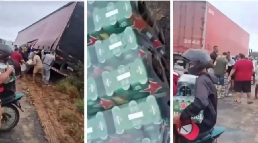 Uma carreta carregada de cervejas da marca Heineken tombou na manhã desta quarta-feira (22), em um trecho da BR-116, próximo à cidade de Serrinha, no interior da Bahia Mesmo com o veículo tombado às margens da rodovia, a carga ficou quase toda intacta. Moradores da região, no entanto, aproveitaram a situação e começaram a levar … Ler mais