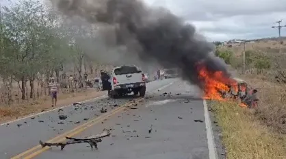 Carro pega fogo após colisão frontal na BA-046 entre Itaberaba e Iaçu
